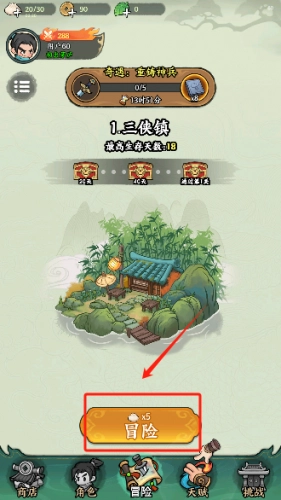 1、打开游戏点击冒险进入到场景中