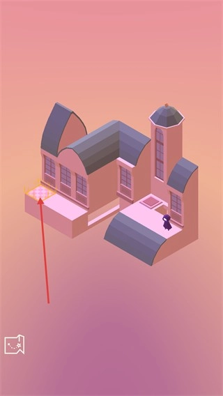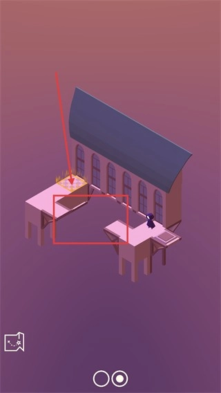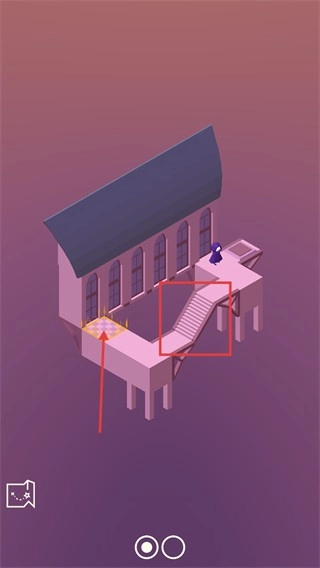 2、进入粉色建筑场景后,操控角色移动至被标注的平台区域,即可通关。