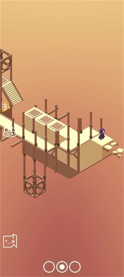 4、场景再次变化后,平台间生成【楼梯】,操控角色通过楼梯移动,连接不同平台以继续探索。