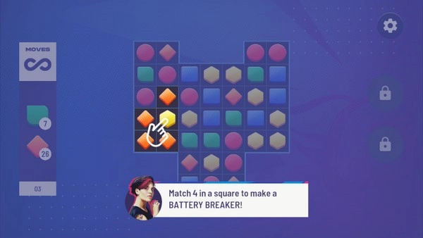 1、在本站安装并打开游戏后,即可进行汽车定制,而定制所需的材料需要收集,核心玩法是通过消除方块来获取材料,每一关都会明确指定需要消除的材料方块类型。