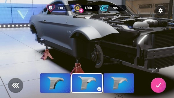 可以挑选车身、引擎、轮胎、内饰之类的部件,还有不同品牌的零件,来打造别具一格的车型。