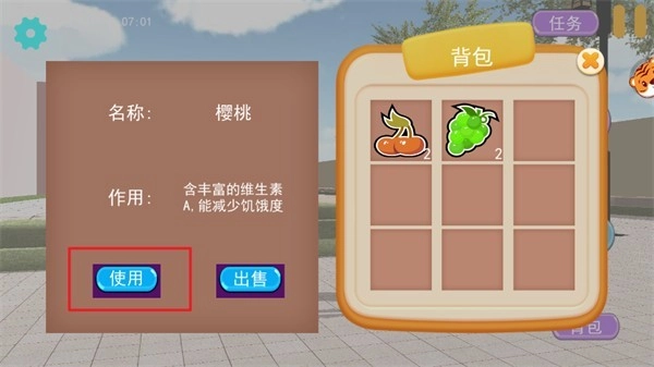 7、查看樱桃的详细信息后点击【使用】食用樱桃,补充体力。