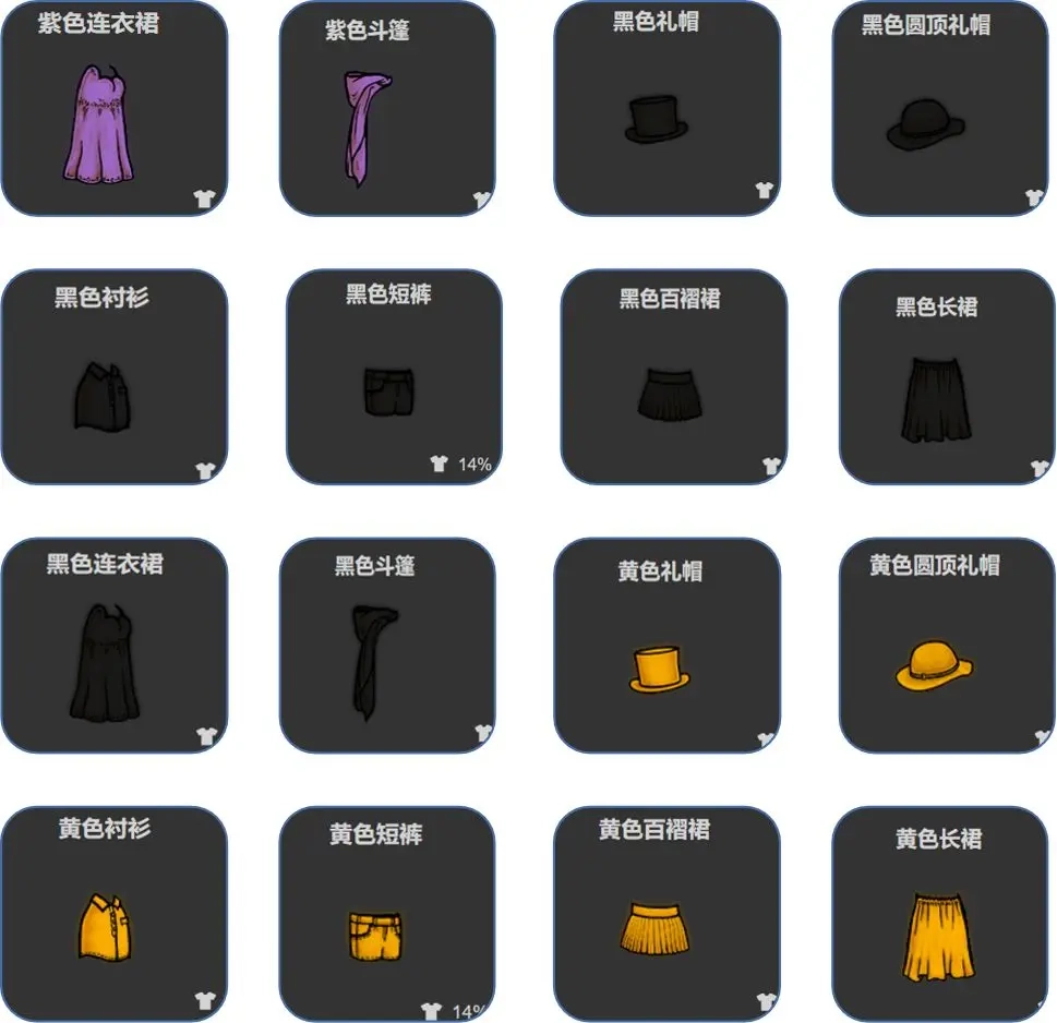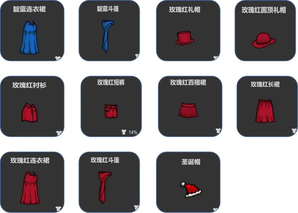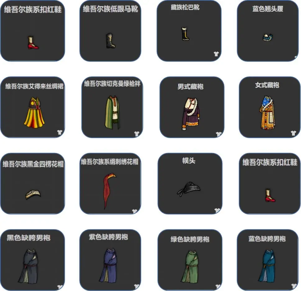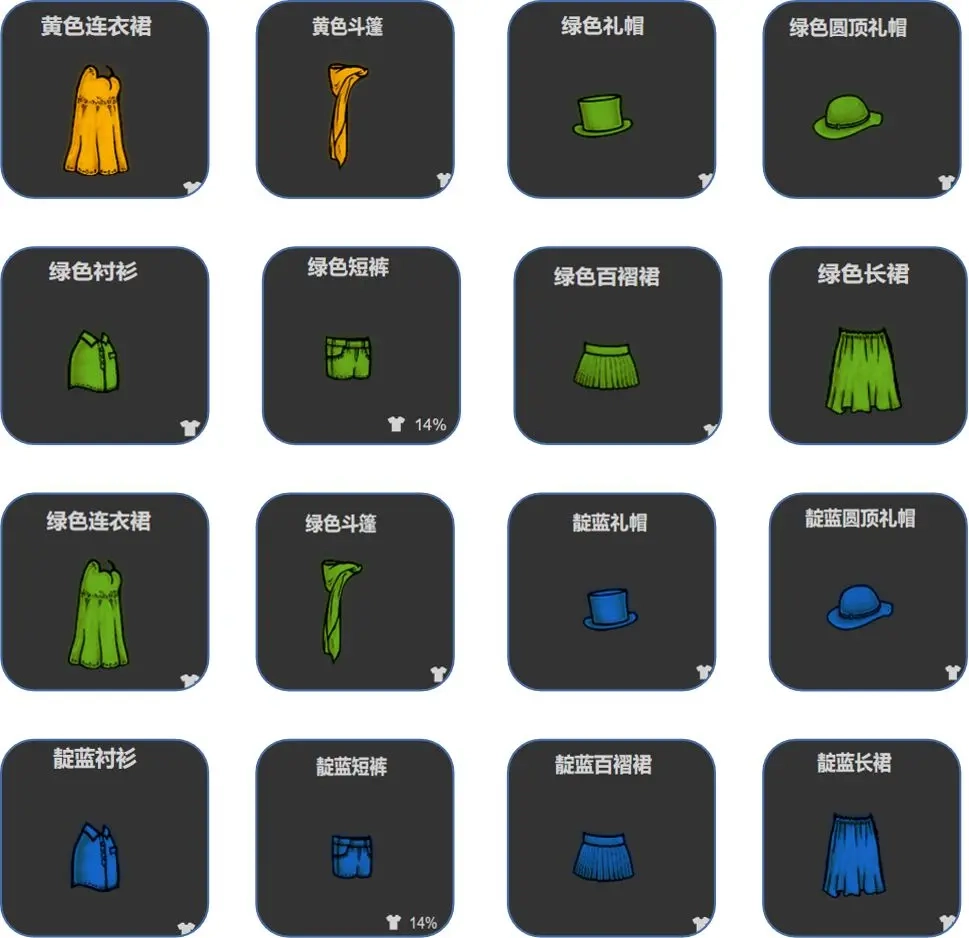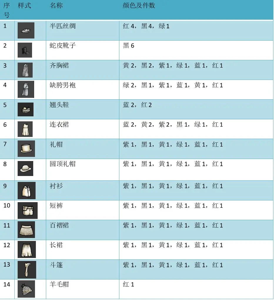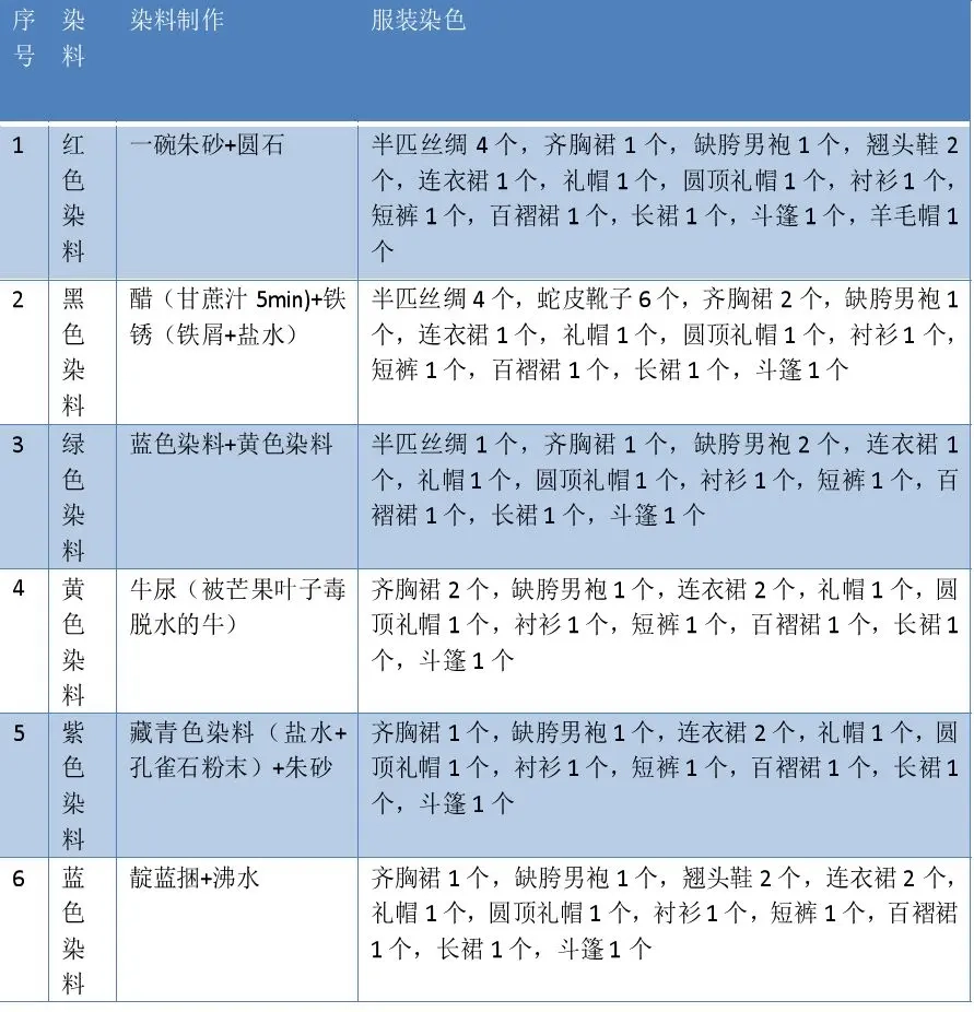 所需的染料和服装清单如下: