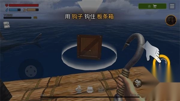 5、然后跟随游戏提示进行游戏,点击板条箱,用钩子将其从水中拉出来;