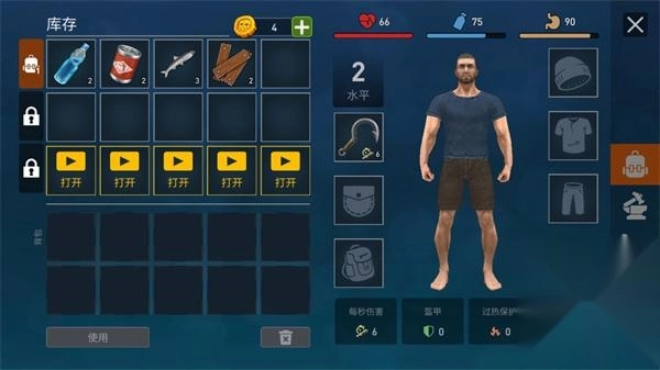 7、当然,我们也需要时刻关注自己的状态和库存,让自己拥有足够的健康值,如果道具不够的话就需要在海上利用道具获得。更多精彩玩法等你体验,开始你的生存之旅吧。