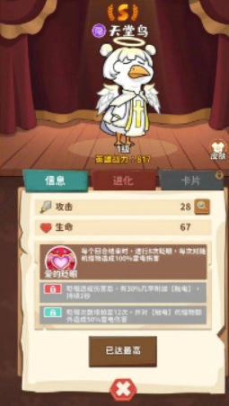 3.过渡角色:雷神鸡(召唤雷云,碰撞触发额外雷电)+ 嘻哈鸭(30 次伤害触发雷电)。