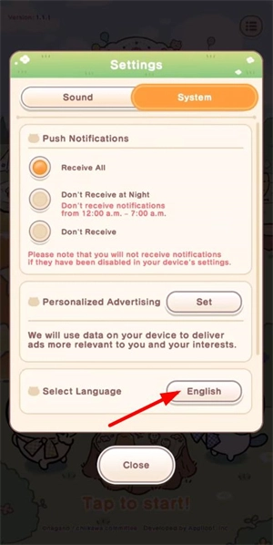 步骤二:然后点击system按钮,在select language选项里点击English切换语言。