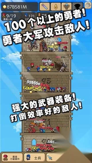 勇者之塔最新版本是一款操作简便、玩法趣味十足的策略战斗闯关游戏,其操作难度极低,各个年龄段的玩家都能轻松上手,尽情享受游戏的乐趣。随着关卡不断深入,玩家还会解锁更多种类丰富的兵种、装备与技能,拥有更广阔的自由搭配空间,是一款十分值得体验的游戏。