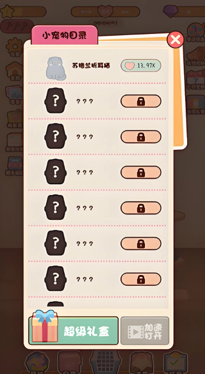 4、已解锁的宠物将出现在目录里,使用爱心购买更高级猫咪,可以缩短合成步骤。