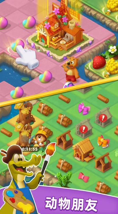 庄园里生活着许多可爱的动物伙伴,你可以通过合成让它们升级进化,解锁更多有趣的行为。