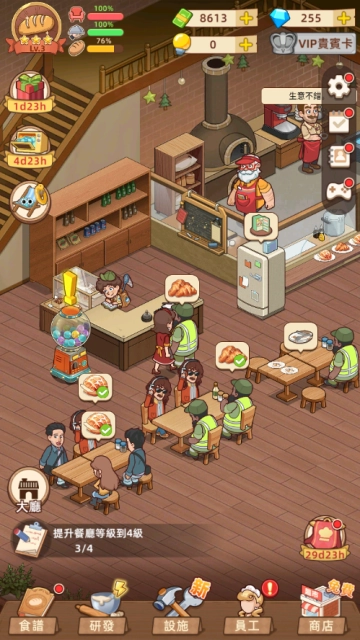 2.个性化店铺设计:玩家能够设计并拓展属于自己的时尚面包店,借助独特的地板、壁纸与家具打造富有个性的空间,让它成为当地最受青睐的聚会之地。