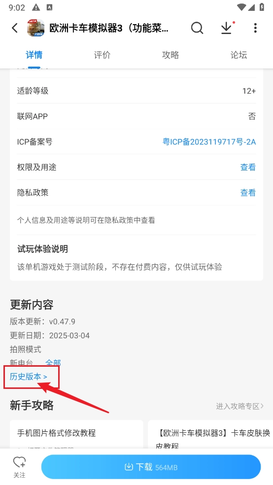 3、接着进入游戏详情页,滑动到"更新内容"。