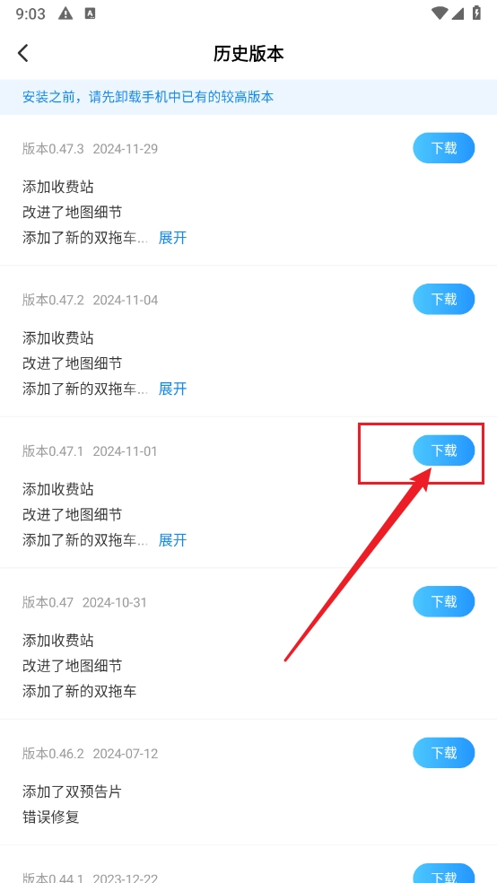 5、最后在历史版本页面滑动找到所需的版本点击右边的""即可。