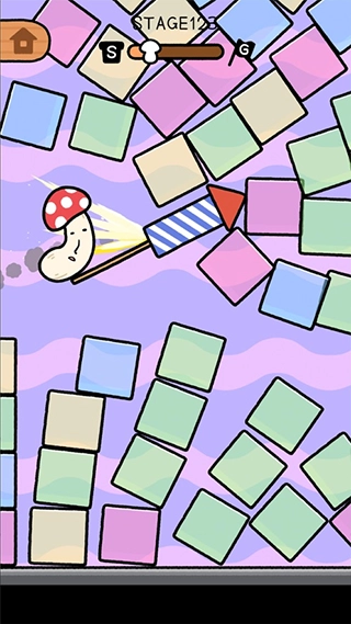 通过滑动屏幕操控蘑菇向上飞起,还能短暂吸附在障碍表面,利用这一特性实现连续跳跃,精准把控落点是顺利前进的核心要点。