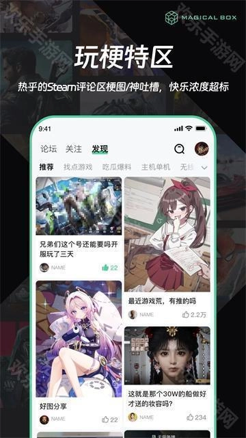魔核版是一款专为Steam游戏玩家打造的优质游戏社区应用,汇聚了海量游戏爱好者,大家可以在这里自由交流各类有趣的游戏。它支持跨平台数据互通,手机端能随时管理Steam游戏库,让游戏热爱无缝延续!现在就加入,与全球玩家共享游戏的激情吧!