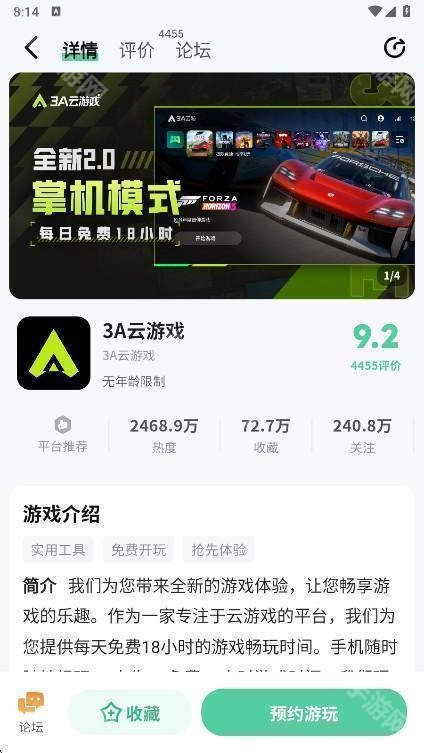 3、进入游戏详情页,可以进行收藏和预约游玩。