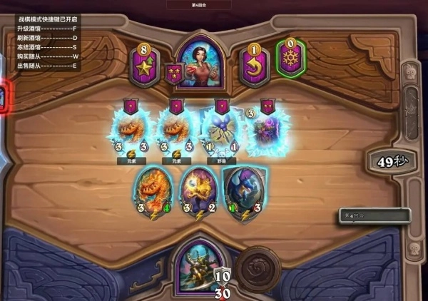 体系成型后会有不少资源,大家得加快手速,新手玩家拿到资源后,优先去酒馆刷极紫外升腾者,铸币用完了再上战吼随从搭配铜须循环。元素自带惊喜机制,阵容其实很容易凑成全金,还带圣盾效果,强度绝对在线,想上分的朋友这段时间可以重点练习元素阵容。