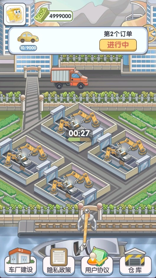 《我的帝王之路》是一款以工厂制造为核心题材的模拟经营游戏,玩家将扮演汽车工业大亨,通过生产和销售汽车来积累财富,逐步拓展商业版图。游戏采用卡通风格的美术设计,画面亲和力强,操作方式简单直观,仅需点击操作即可完成各项指令,无需考验手速,也没有时间限制带来的压力,整体体验轻松休闲,非常适合在碎片化时间里放松游玩。