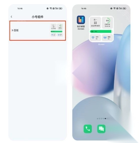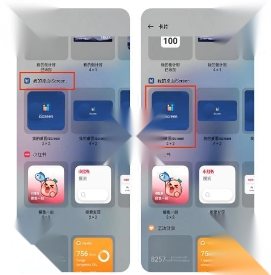 2、在列表中找到我的桌面iScreen,选择小组件尺寸,点击或拖动小组件到桌面;