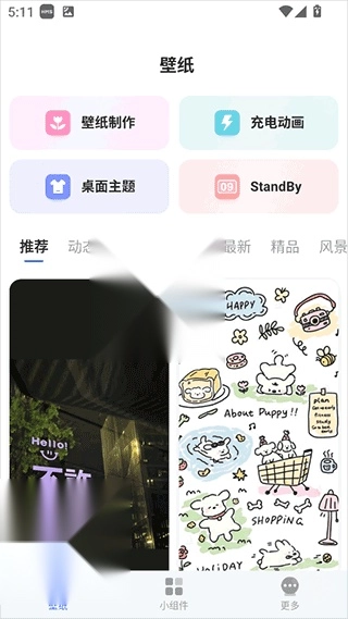 4、实用工具,提供大、中、小型组件模板,支持自动壁纸更换、屏幕锁倒计时、抽屉式壁纸制作工具。