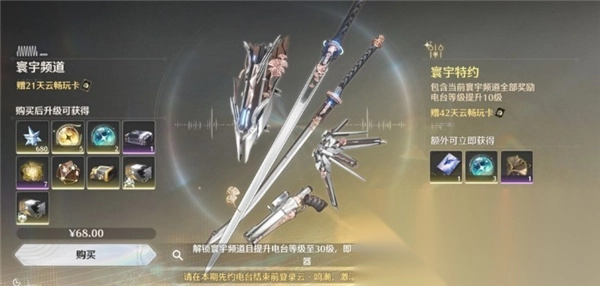 购买指定商品可获赠畅玩卡:月相观测卡赠7日,寰宇频道赠21日,寰宇特约升级赠21日,寰宇特约赠42日。