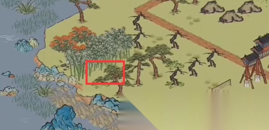 宝箱二位置:此宝箱较为隐蔽,若无法看见可尝试砍掉周围的松树;