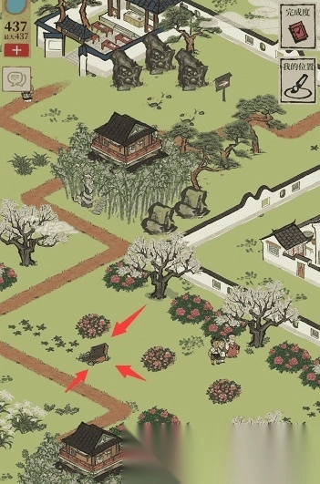 宝箱三位置:需要先铲除地面上的花朵才能获取;