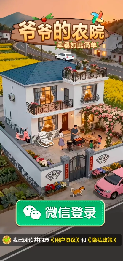 《爷爷的农院》是一款治愈系的农场模拟经营游戏,核心玩法是帮助爷爷重新打理荒废的农院——从最初种植蔬菜、饲养鸡鸭起步,逐步升级土地、棚舍与加工房,最终将农院打造得宽敞又美观。游戏整体呈现出轻松的“养老”风格,操作简单易上手,无需费脑,很适合闲暇时随手收菜、欣赏自己的小农场。