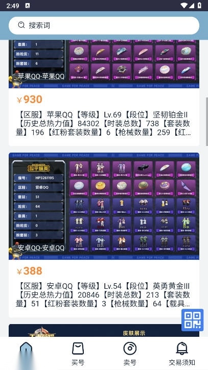 海量账号筛选:拥有庞大且分类精细的账号数据库,涵盖热门、端游的各类账号。玩家可依据游戏名称、账号等级、装备情况、价格区间等多种条件进行精准筛选。比如想购买高段位《王者荣耀》账号,能通过筛选快速定位符合要求的账号,节省大量寻找时间。