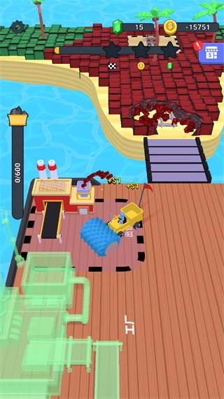 在本作中,玩家需驾驶挖掘机在不同岛屿区域进行资源采集,各类矿石价值各异,通过装载并出售矿石可获得金币收益。这些金币可用于升级挖掘机与拖车,从而提升采集效率与运输能力,进而挑战更深区域的稀有资源。