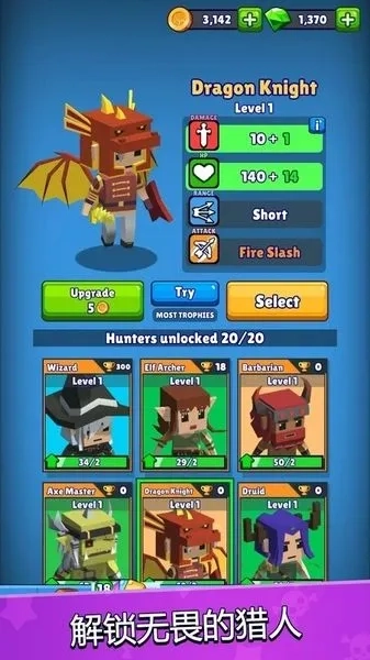 2、有30个可解锁角色,各有独特技能,支持升级强化与策略搭配。