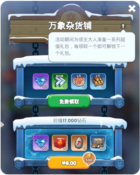 第三类:活动弹窗礼包。活动弹窗包轮换通常为万象杂货铺和神秘藏宝室, 建议直接购买。