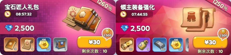 这两个礼包属于唯二特殊类型礼包,必买!考虑到礼包提升速度的情况下,最好是在新服建立第一天所需购买,这样可以更容易跟上服务器主力部队升级速度。
