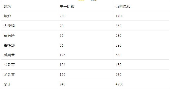 所有建筑从火晶1升到火晶5需要17100火晶