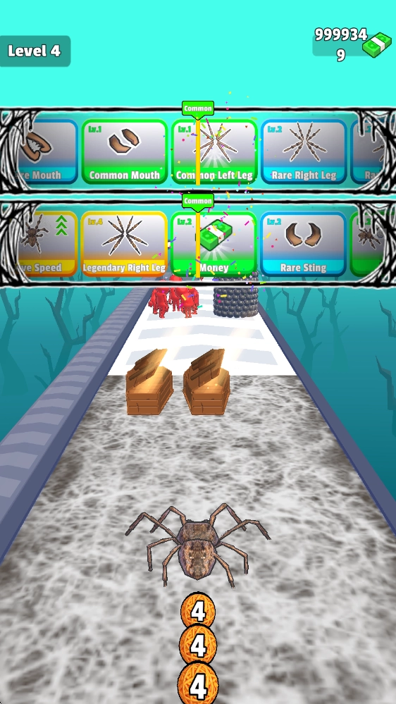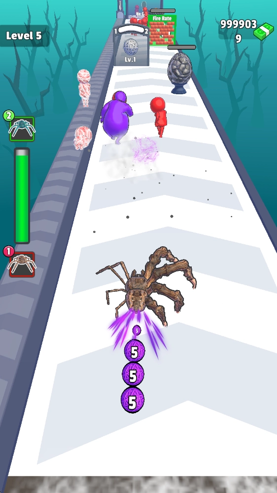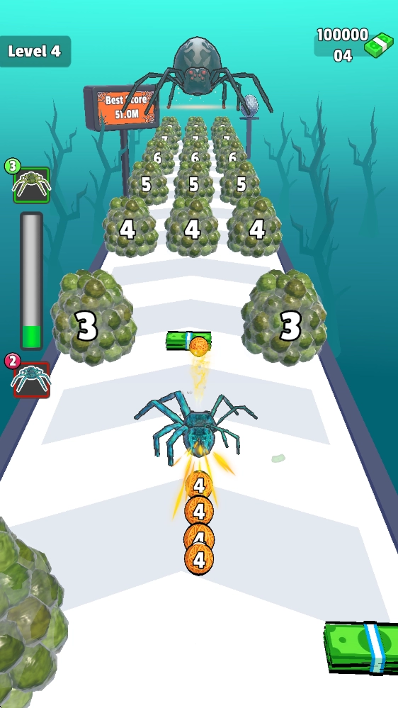 《蜘蛛进化3D》(Spider Evolution 3D)是一款充满趣味的跑酷闯关游戏。游戏围绕可无限进化的蜘蛛展开,玩家需要操控蜘蛛持续前进,通过发射蛛丝捕捉猎物,同时收集途中的各类道具奖励,直至抵达终点。跨越重重障碍后,便能解锁全新场景。此外,玩家还能利用收集到的道具合成并强化蜘蛛的各个部位,比如蜘蛛腿、蛛丝等,助力蜘蛛勇往直前,挑战更多关卡!