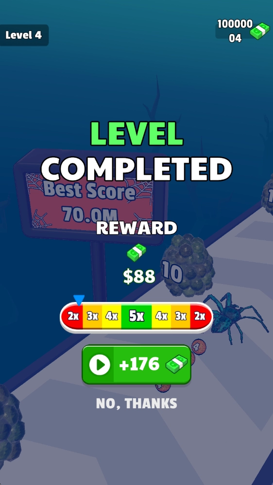 1、在一场场永无止境的跑酷挑战中,你的蜘蛛将完成蜕变——新的腿、眼睛与绚丽图案会逐一显现,助你不断攻克难度攀升的关卡。