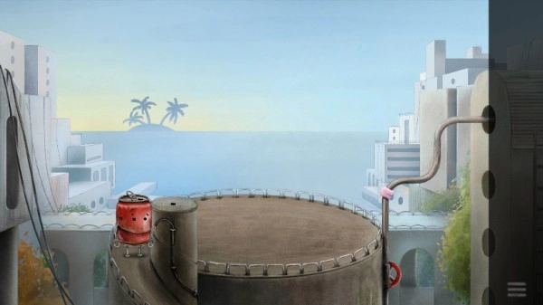 7、即可前往下一场景,点击左侧保存图标可以保存进度,点击右侧物品栏下方的三道横线,即可进入设置界面。