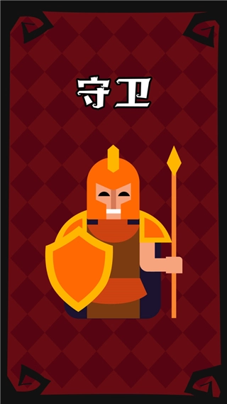 技能:“守护”,即每晚可以守护一名玩家(包括自己),如果被守护的玩家当晚被狼人刀,则该玩家不会死亡,但守卫无法连续两晚守护同一名玩家。