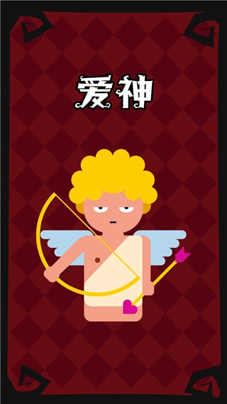 技能:“爱神之箭”,开局时丘比特可以选择任意其中两名玩家(包括自己)成为情侣,情侣中如果有一名玩家出局,那么另外一名玩家也会殉情跟着出局。