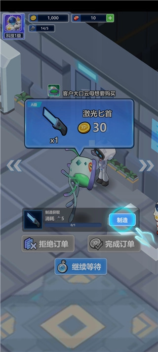 5、这时会有太空生物的顾客前来购买物资,点击顾客头上的气泡,就可以看到客人的订单需求;