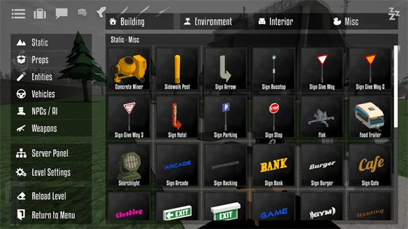 2、丰富的物品道具可以让你去选择添加,各种各样的功能可以自由选择去游玩使用。