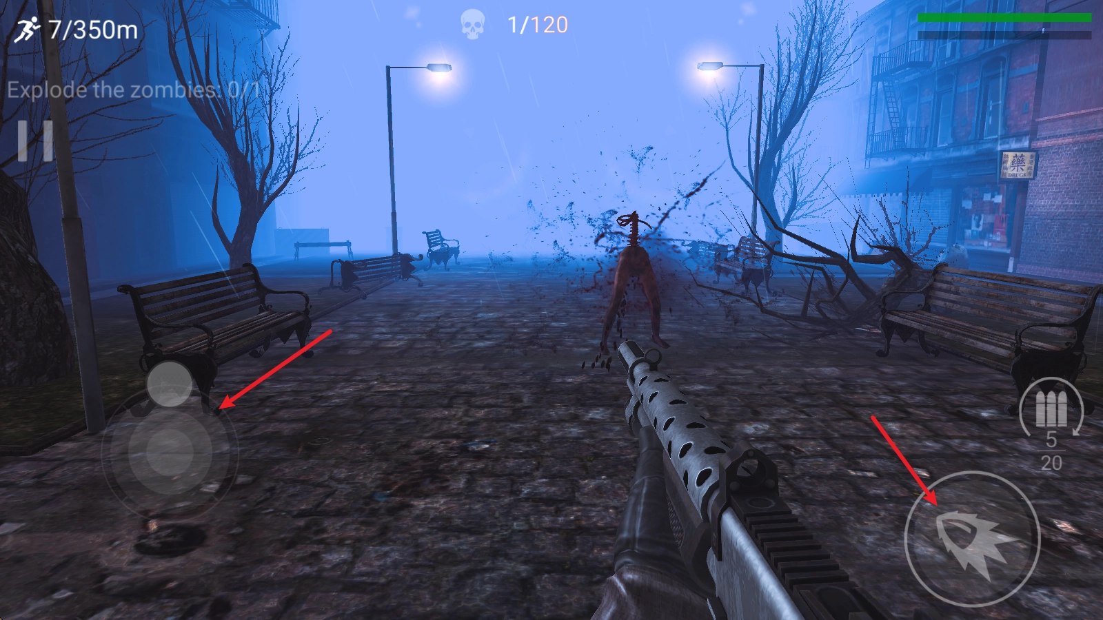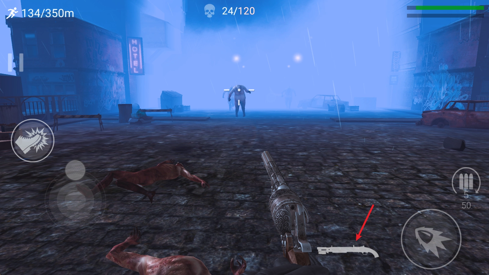 5、当僵尸靠近的时候,还可以使用踢腿攻击。