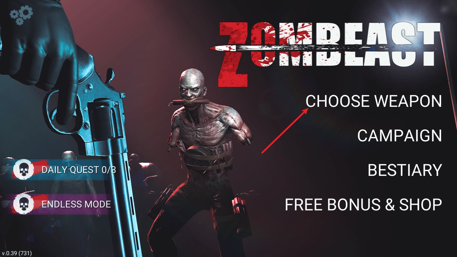 1、在主界面找到“CHOOSE WEAPON”选项并点击,即可进入武器界面。