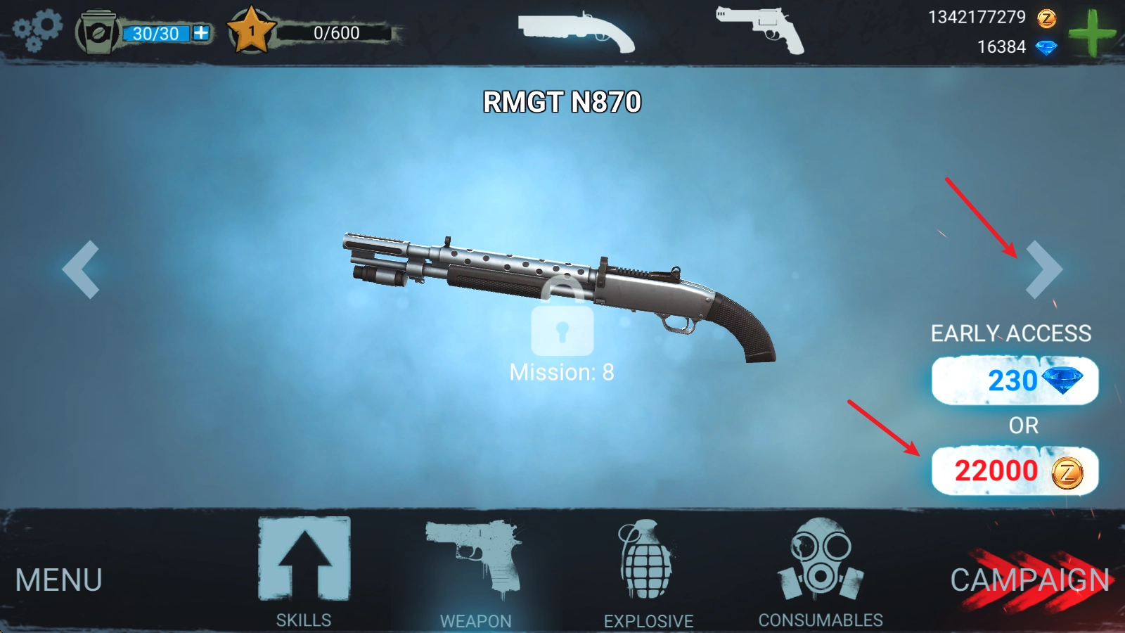 2、接着通过这里的箭头即可切换到不同武器,选择合适的进行购买即可。