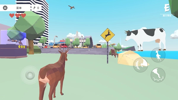 2. 操控这只鹿,和你的动物朋友们一起享受美好时光,目标是彻底摧毁小镇上的一切,撞到汽车上。