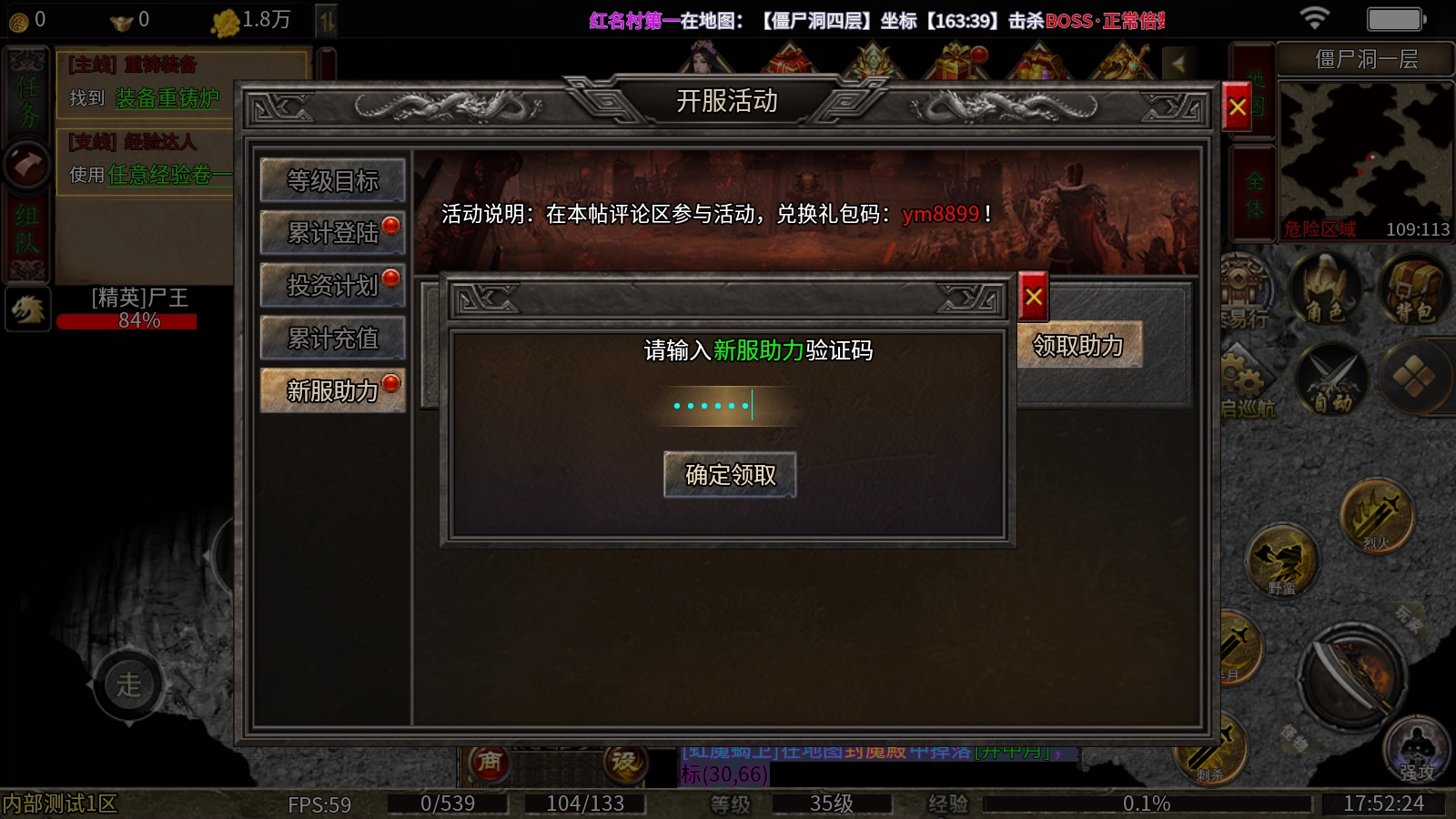 兑换方式:点击上方的充值奖励,选择新服助力,输入兑换码即可。
