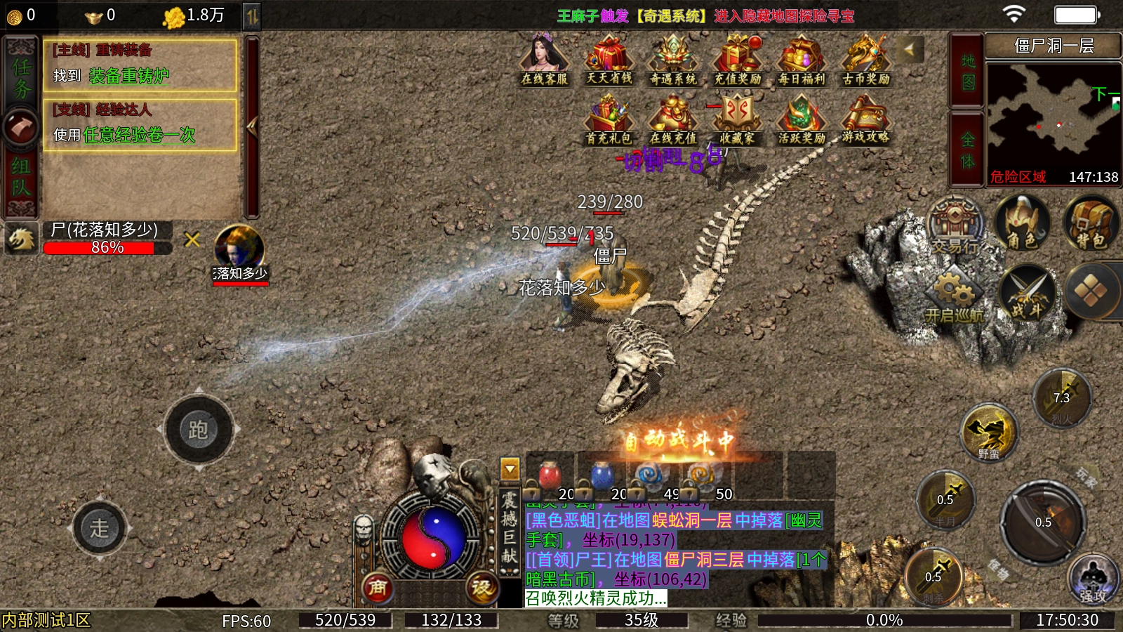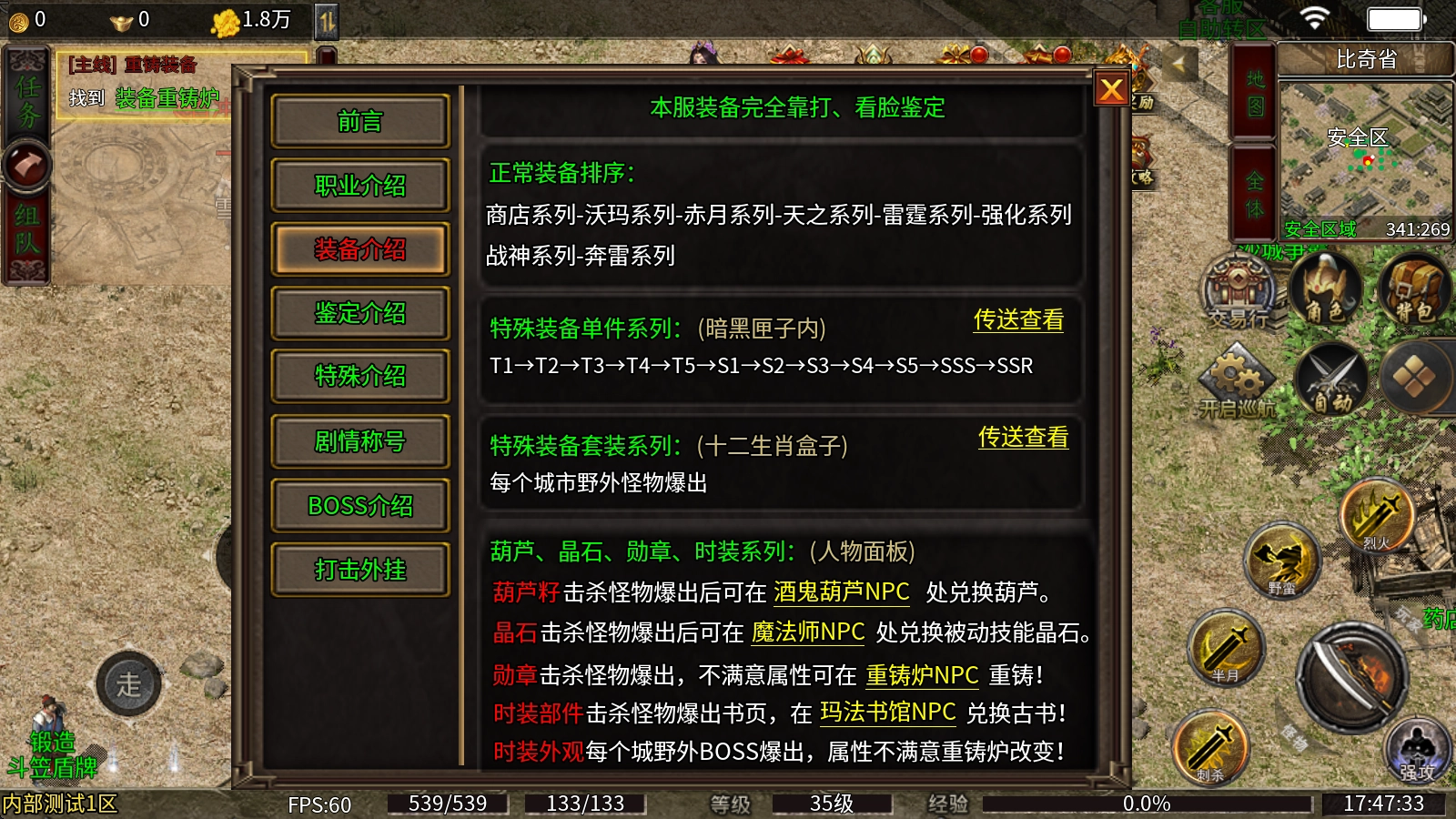 本服务器内打怪掉落的所有物品均为非绑定状态,支持自由交易,充值点数还能领取累计充值奖励!即便是零氪金玩家也能轻松畅玩,只要投入时间同样有机会实现梦想!服务器长期稳定耐玩、内容持续更新,更有大型暗黑风格系统加持!