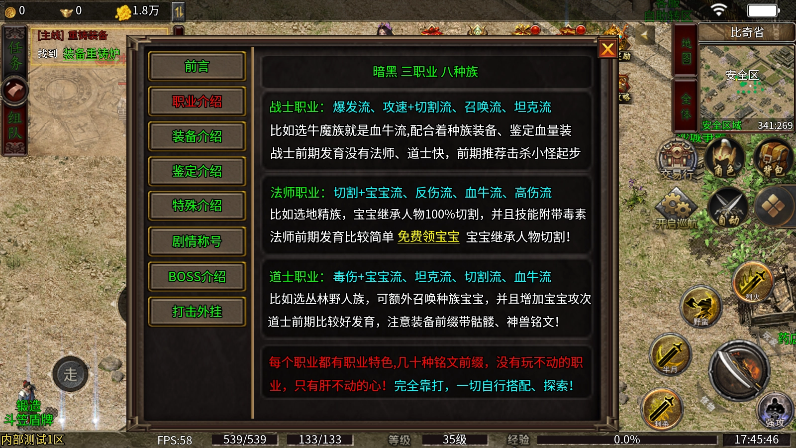 3、每个职业都有职业特色,几十种铭文前缀,没有玩不动的职业,只有肝不动的心!完全靠打,一切自行搭配、探索!