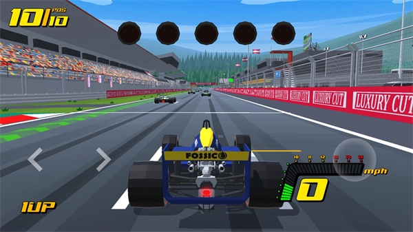 3、进入比赛后点击屏幕左边将控制车辆的转向,右下方是前进,右上方是使用加速。