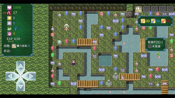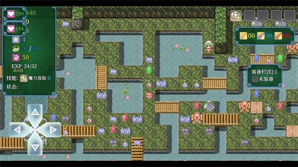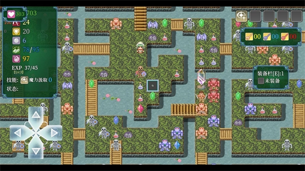 2、进入关卡后左边的按钮控制角色的移动,屏幕左上方是玩家的属性。